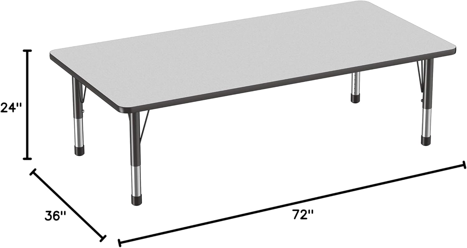FDP Rectangle Activity School and Classroom Kids Table (36 x 72 inch), Toddler Legs, Adjustable Height 15-24 inches - Gray Top and Black Edge