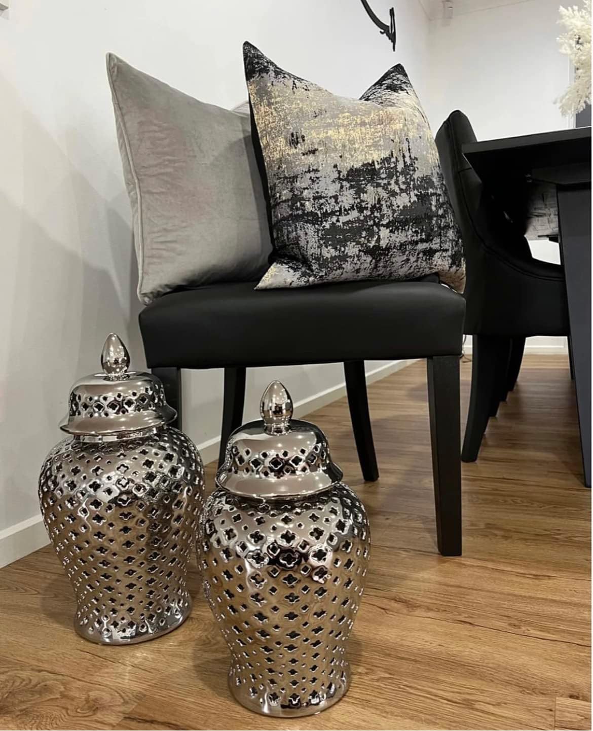 - Premium Jacquard & Velvet Pillow Cover : Crafted with 70% polyester 30% viscose jacquard weave (front) in grey-black with woven gold threads that catch the light, creating a subtle metallic glow. Reverses to 100% polyester black velvet (back) for cloud-like softness. Two looks in one—instantly elevate your sofas, beds, or accent chairs.