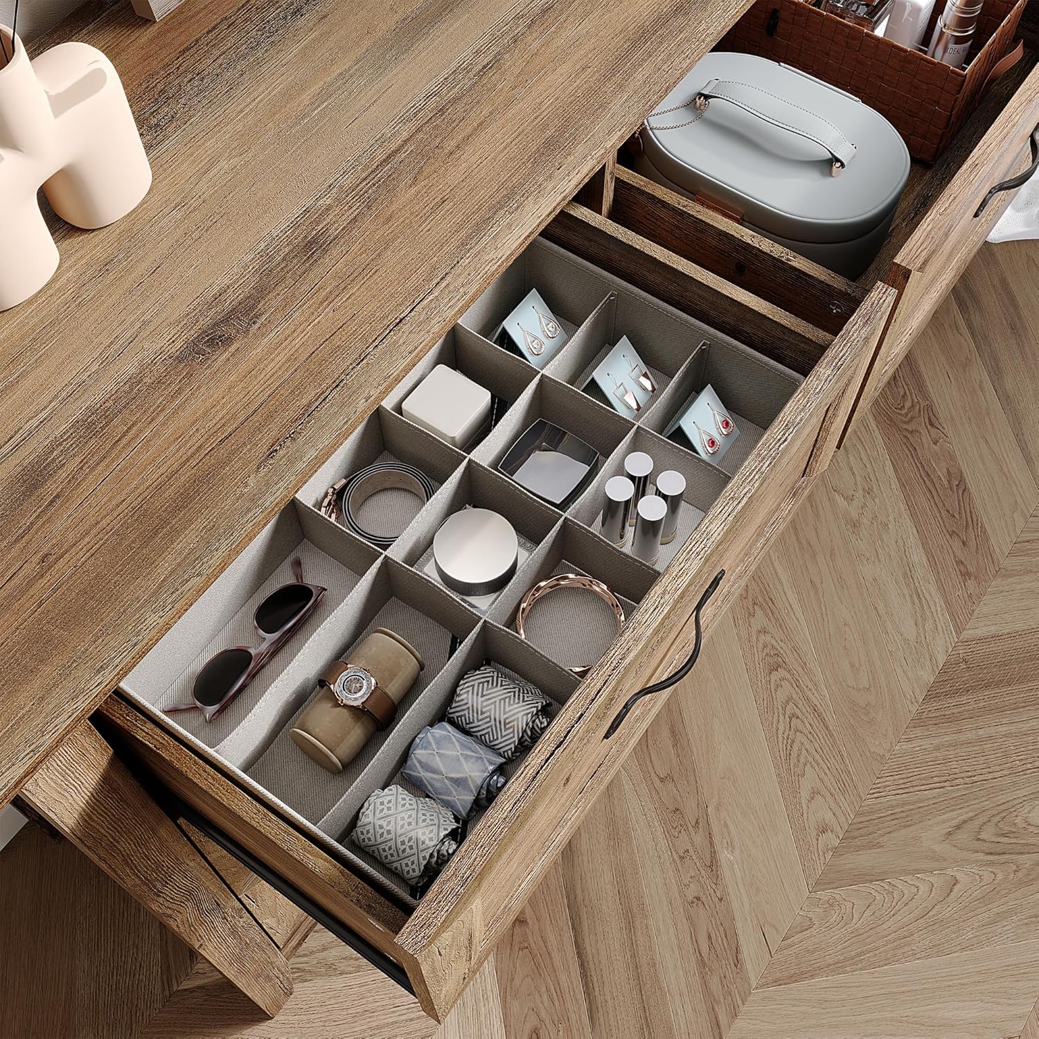 - ăRefined Craftsmanshipă Different from the surface sticker craftsmanship, LINSY HOME storage drawer adopts full edge-sealing craftsmanship. Strictly edge-sealed panels not only make the drawer feel smoother, but also are less prone to breakage and have better durability.
