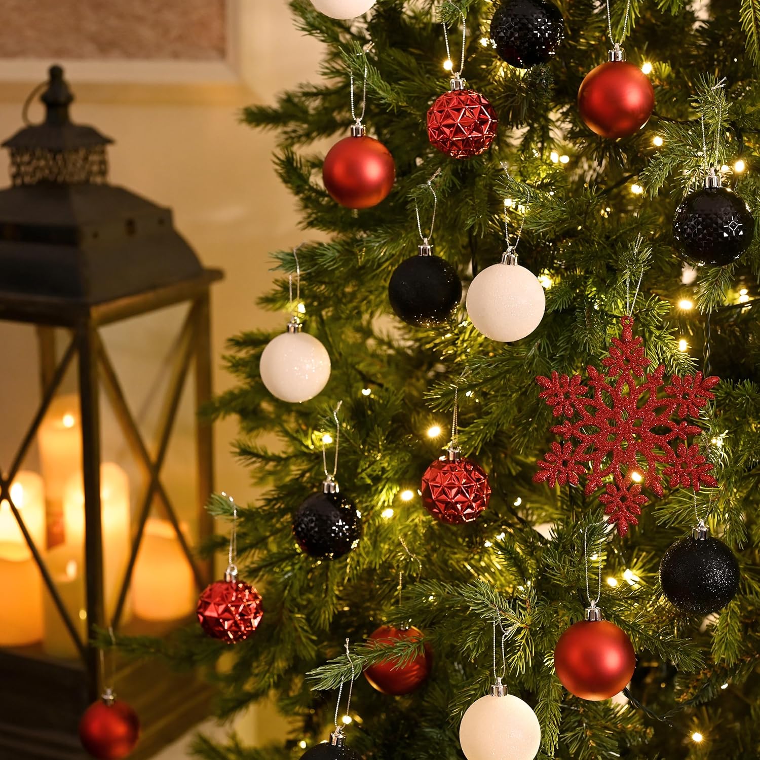 Valery Madelyn Christmas Tree Decorations Ornament Set for Fall Halloween, 50ct 2.36 Inches Red and Black Shatterproof Christmas Ball Ornaments Hanging Xmas Holiday Party Decor