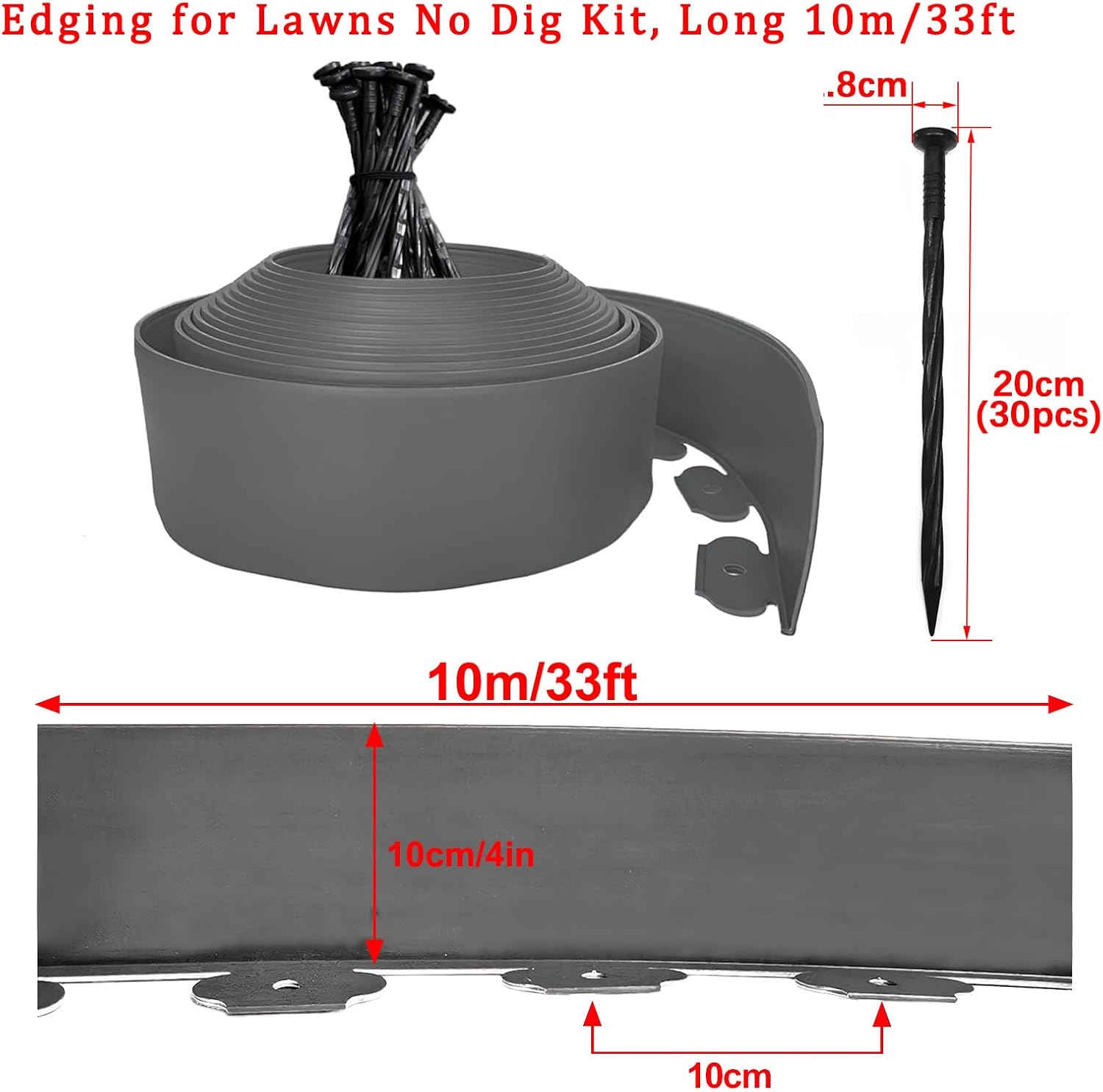 - Edging for Landscaping: 10m long/33ft, 10cm/4in tall, DIY the garden edging to create a beautiful landscape courtyard. We also offer 10m long/33ft, 5cm/2in tall, different height & color.