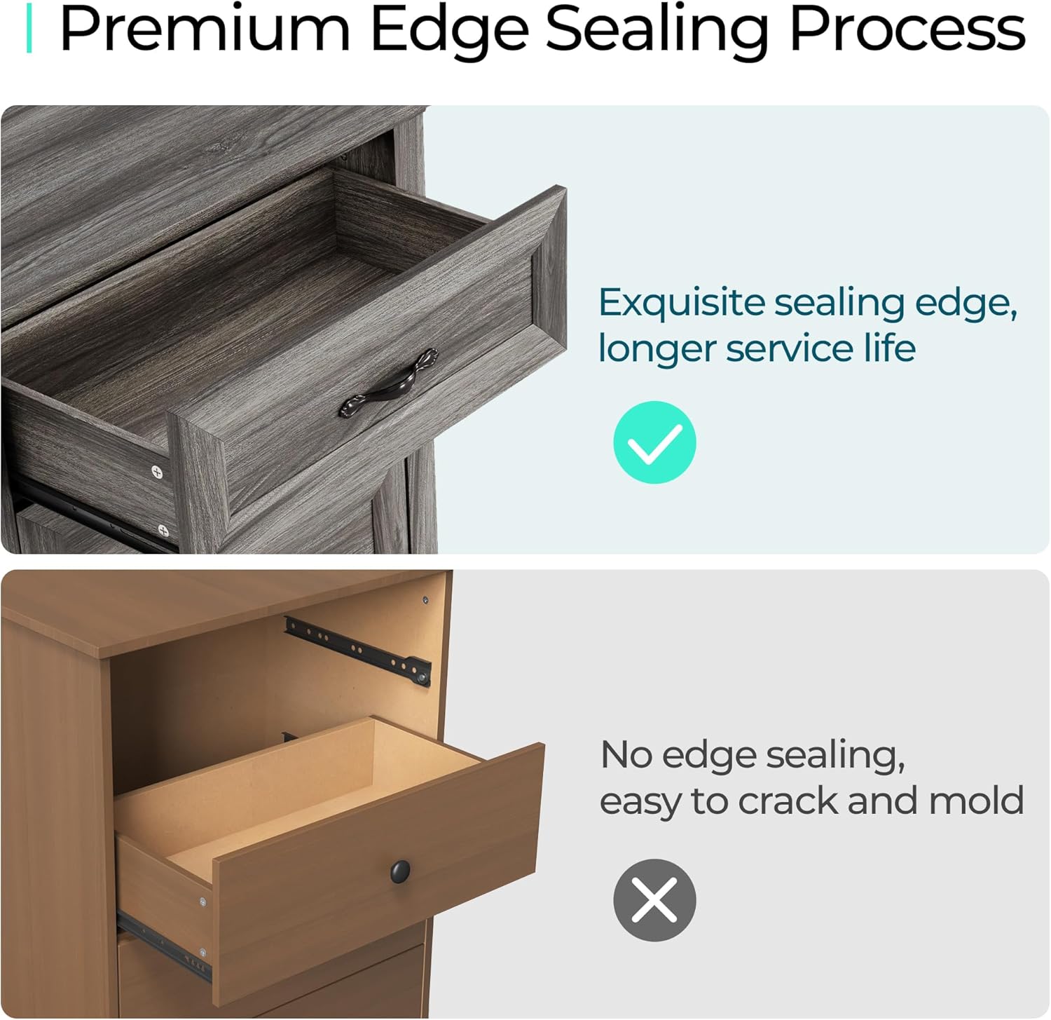 - Eco-Friendly Wood Construction: Fashioned with eco-friendly manufactured wood, this grey dresser for the bedroom boasts a clean and sleek design. Its waterproof seal ensures durability and safety, making it a reliable dresser organizer for any space.