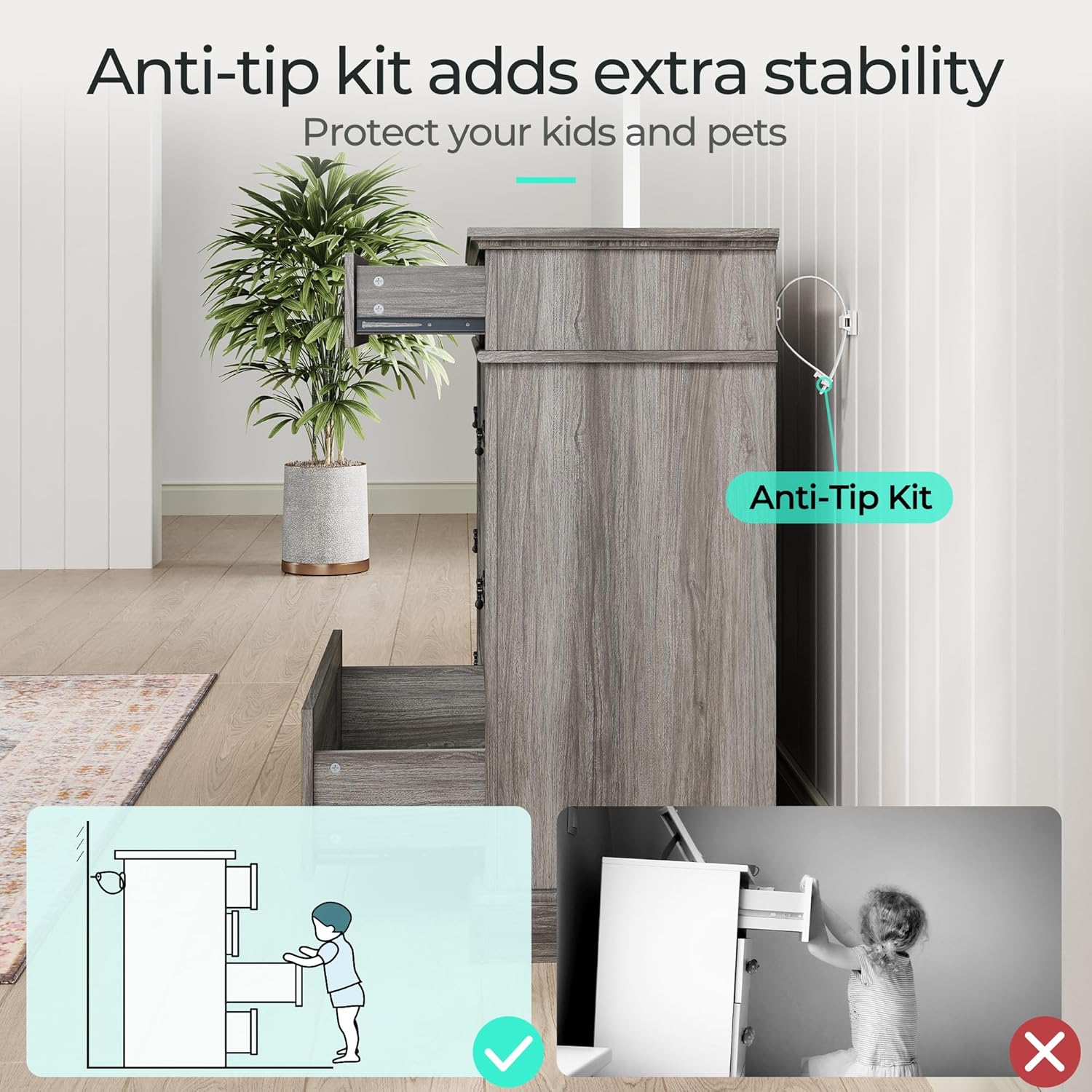 - Safety First: Equipped with a wall anchor kit to prevent tip-over incidents, this dresser for closet prioritizes safety. Smooth metal runners with safety stops ensure drawers stay securely in place. Assembly instructions and hardware are included for easy setup.