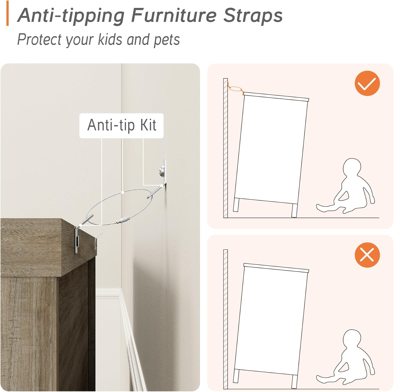 - ăReliability&Humanized DesignăThe dresser for bedroom with solid wood round gourd furniture legs add beauty and ensure the stability of the storage cabinet.And an additional anti-tipping kit is also included for added safety.Total Weight Capacity: 88 lbs.The distance between the bottom plate and the floor is large enough so that the robot vacuum cleaner can pass freely.
