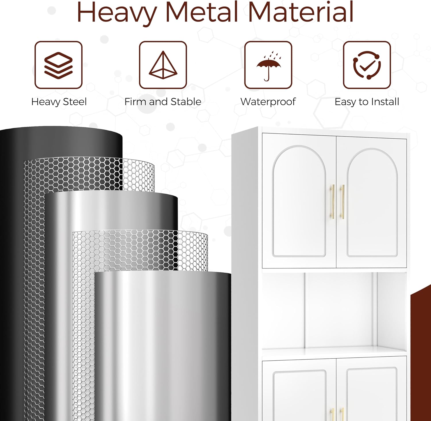 75" Tall Kitchen Pantry Storage Cabinet, Metal Storage Cabinets with 4 Doors and Adjustable Shelves,White Kitchen Hutch Cabinet with Microwave Stand, Large Cupboard for Dining Living Room