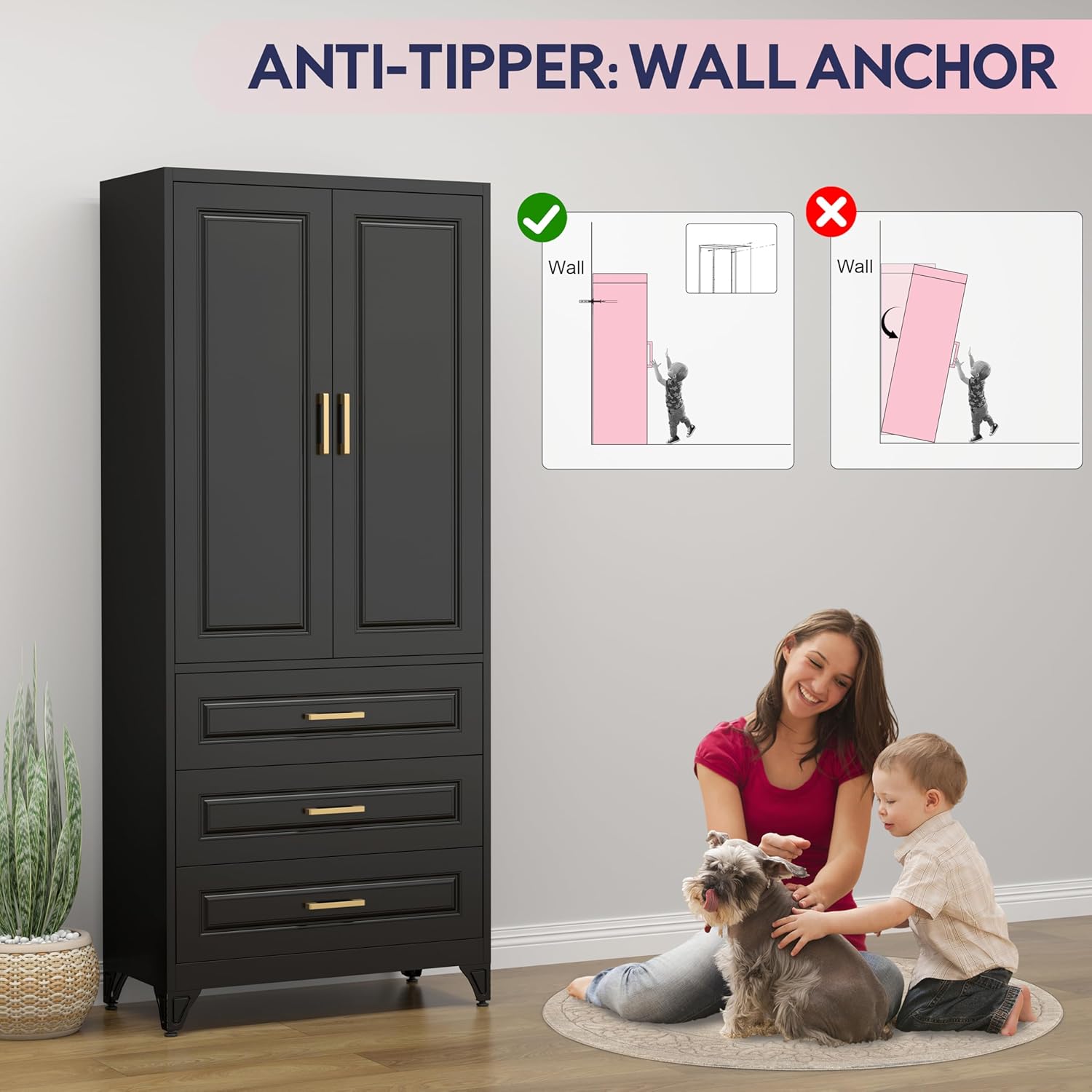 - Secure Anti-Tip Design: Built-in wall mounting holes secure the tall cabinet to prevent tipping and ensure safety around children or pets. Adjustable legs compensate for uneven floors and prevent wobbling. Reliable pantry storage cabinet for kitchens, garages, or home offices