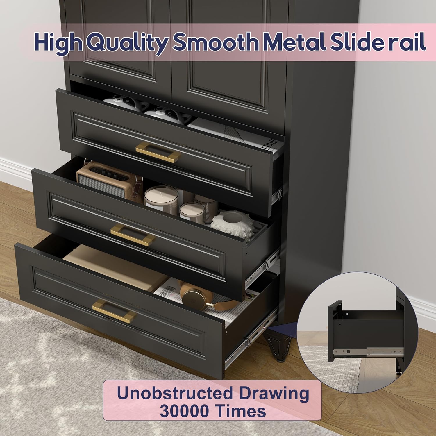 Pantry Kitchen Cabinet with Drawer, 75" Tall Pantry Storage Cabinet, Metal Storage Cabinets with Doors and Shelves, Large Freestanding Cupboard for Dining Room, Assembly Required, Black